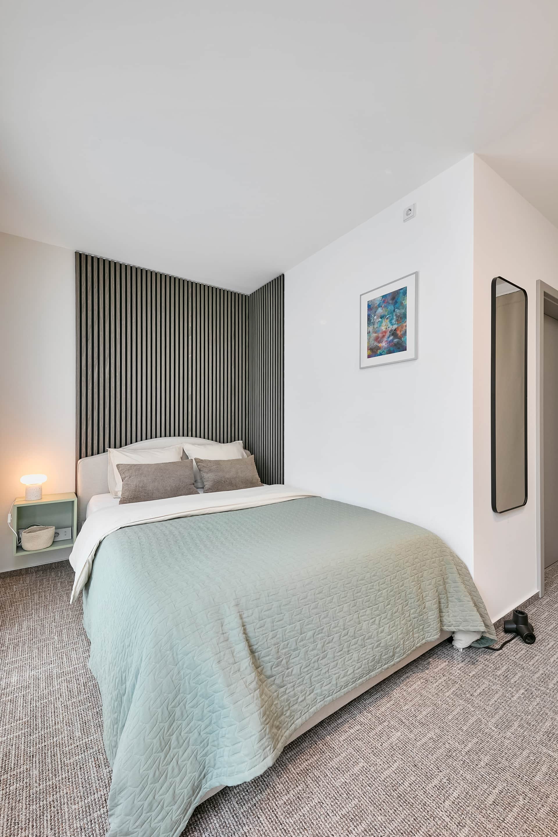 The room is bright and quiet, equipped with a 140 cm double bed with storage, a private bathroom with shower and toilet, a TV with Fire TV Stick (Netflix, Prime, etc.), a Sonos speaker for music, and a coffee machine with sustainable capsules. Modern soundproof windows keep things peaceful; however, depending on wind direction and runway use, you may occasionally hear aircraft noise from the nearby airport.